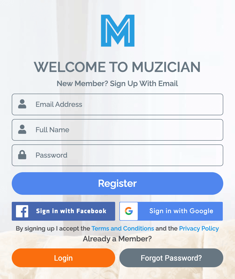 If you’ve forgotten your password, go to Muzician.com and click Login (top right). Once the Login page is displayed select Forgot Password.