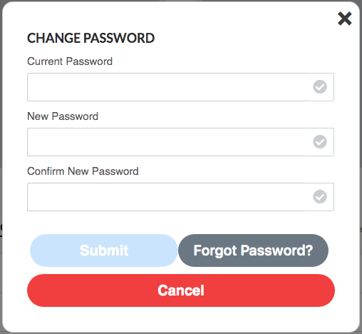Enter your current password in the form, then enter your new password in the New Password field below, and re-enter your new password in the Confirm New Password field. Then hit ‘Submit’. Please note - if you have signed in with Facebook or Google you will not see this option because it is not applicable.